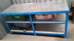 Metallic reinforced workbench with 2 shelves.